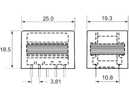 通孔 音频变压器 150Ω 100mW Hz @ 300, 1mW Hz @ 30