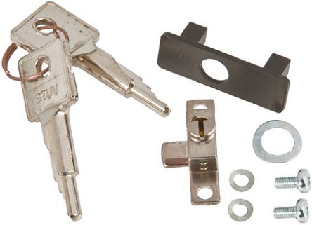 A Schroff cylinder lock with 2 keys and assembly parts for Compac cases.