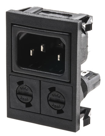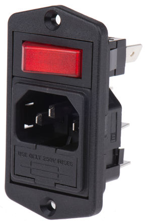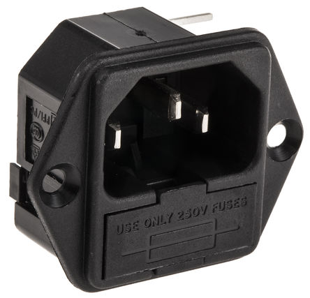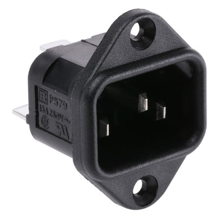 Bulgin Power 面板安装 C14 IEC 插头 PX0579/63, 额定15A, 250 V 交流