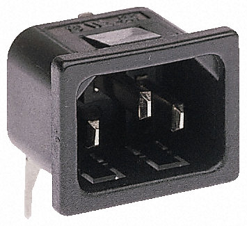 Schurter 面板安装 C14 直角 IEC 插头 GSP2.9113.13, 螺钉拧紧,焊接端接, 额定10A, 250 V