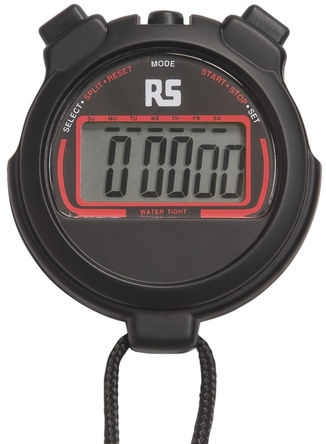 RS Pro 509RS 黑色 袖珍型 1/100s 电池运作 数字 秒表, 尺寸64 x 58mm