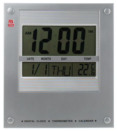 RS Pro 7095 (quartz) 银色 墙壁 数字 塑料 时钟, 电池运作, 尺寸220 x 235 x 20mm