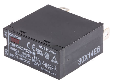 Omron 2 A DIN轨安装 固态继电器 G3ROA202SZNDC524, 三端双向可控硅开关元件输出, 零交叉切换, 240 V 交流