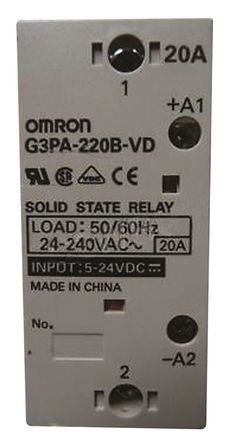 Omron 20 A 底盘安装 固态继电器 G3PA-220B-VD DC5-24, 三端双向可控硅开关元件输出, 零交叉切换, 264 V