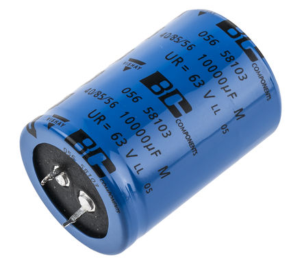 Vishay 56 系列 63 V 直流 10000μF 通孔 铝电解电容器 MAL205658103E3, ±20%容差, 35mΩ(等值串联), 最高+85°C