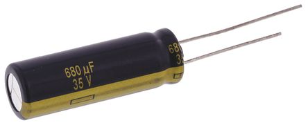 Panasonic FC 径向 系列 35 V 直流 680μF 通孔 铝电解电容器 EEUFC1V681L, ±20%容差, 35mΩ(等值串联), 最高+105°C