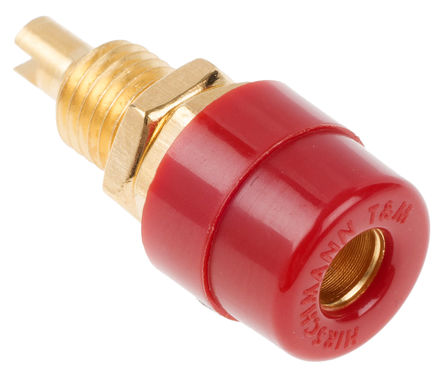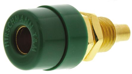 Hirschmann 测试和测量 BIL 20 / BIL 20 镀金 I 类 4mm 镀金和镀镍底盘安装测试插座,带绝缘头和环、焊接连接和 M6 螺纹主体。 这些 BIL 20 系列 4mm 测试插座,特别适用于壁厚高达 2mm 的设备底板和开关面板。
