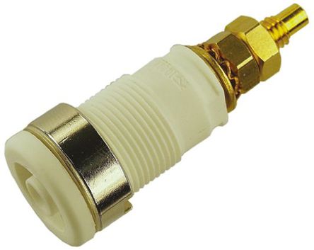Hirschmann 测试和测量 SEB 2600 G M4,III 类 4mm 镀金黄铜底盘安装触摸保护安全测试插座,M12 螺纹塑料主体 (PA) 和 M4 螺纹端接,带焊接连接。 这些 SEB 2600 G M4 4mm 测试插座特别适用于安装在壁厚达 6mm 的设备底板和开关面板中,需要安装孔直径为 12.2mm。