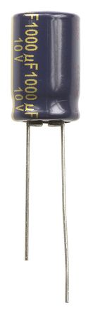 Panasonic FC 径向 系列 10 V 直流 1000μF 通孔 铝电解电容器 EEUFC1A102, ±20%容差, 68mΩ(等值串联), 最高+105°C