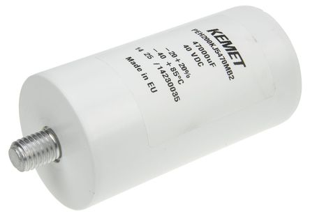 KEMET PEH200 系列 40 V 直流 47000μF 螺柱安装 铝电解电容器 PEH200KJ5470MB2, ±20%容差, 8mΩ(等值串联), 最高+85°C, 罐 - 螺钉接线端子,径向封装