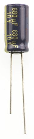 Panasonic FC 径向 系列 10 V 直流 680μF 通孔 铝电解电容器 EEUFC1A681L, ±20%容差, 85mΩ(等值串联), 最高+105°C