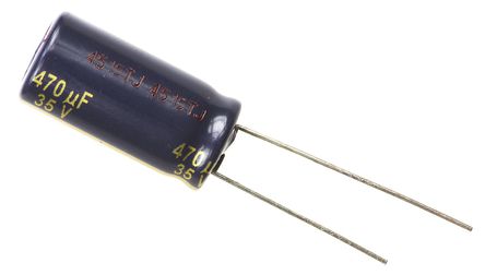 Panasonic FC 径向 系列 35 V 直流 470μF 通孔 铝电解电容器 EEUFC1V471, ±20%容差, 52mΩ(等值串联), 最高+105°C