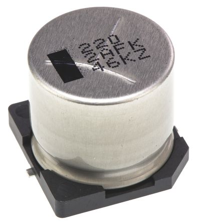 EEVFK2A221M,537-0679,Panasonic FK SMD 系列 100 V 直流 220μF SMD 铝电解电容器 EEVFK2A221M, ±20%容差, 153mΩ(等值串联), 最高+105°C ,Panasonic