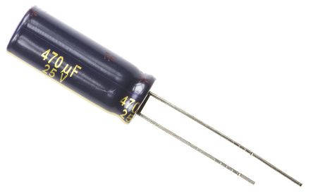 Panasonic FC 径向 系列 25 V 直流 470μF 通孔 铝电解电容器 EEUFC1E471L, ±20%容差, 65mΩ(等值串联), 最高+105°C