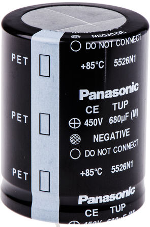 Panasonic UP,T 型 系列 450 V 680μF 通孔 铝电解电容器 ECET2WP681FJ, ±20%容差, 293mΩ(等值串联), 最高+85°C